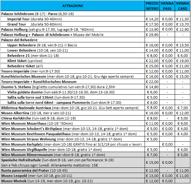 Con la Vienna City Card avrete i mezzi compresi, ma le attrazioni saranno solo scontate di un paio d’euro (sotto il dettaglio).